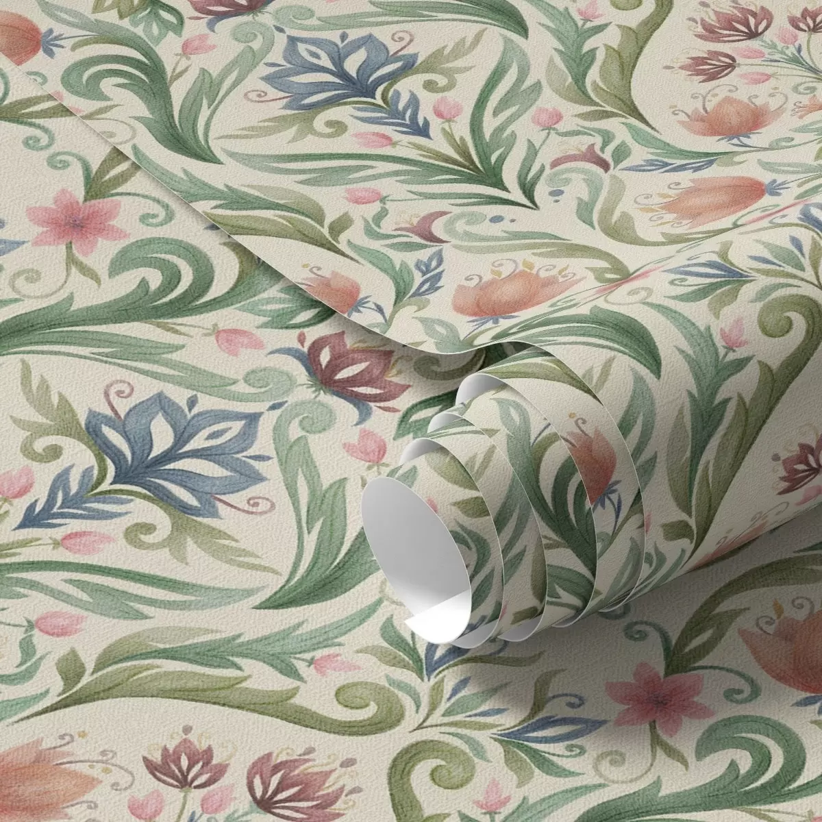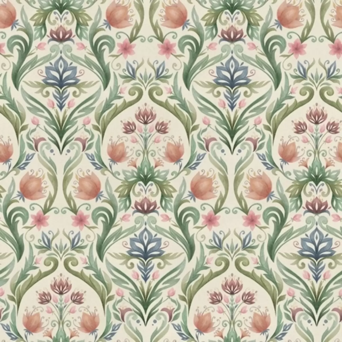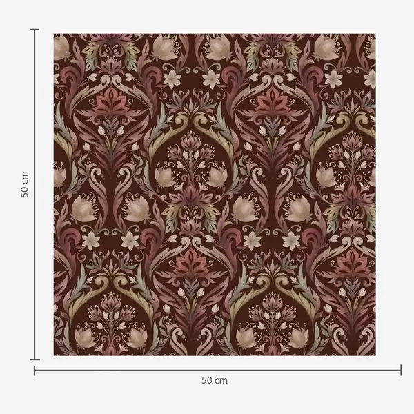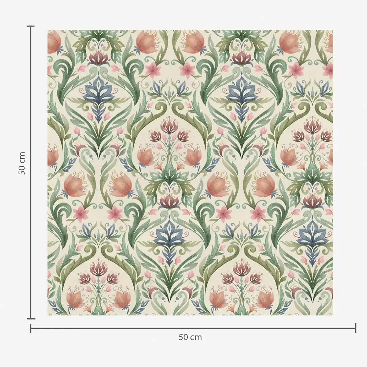 Papier peint Ornement floral symétrique, terre cuite et vert N° a00827