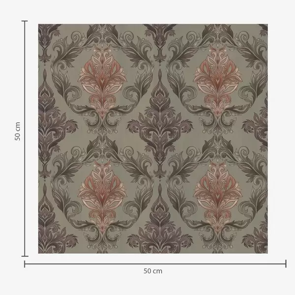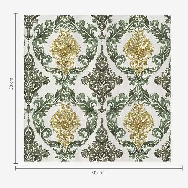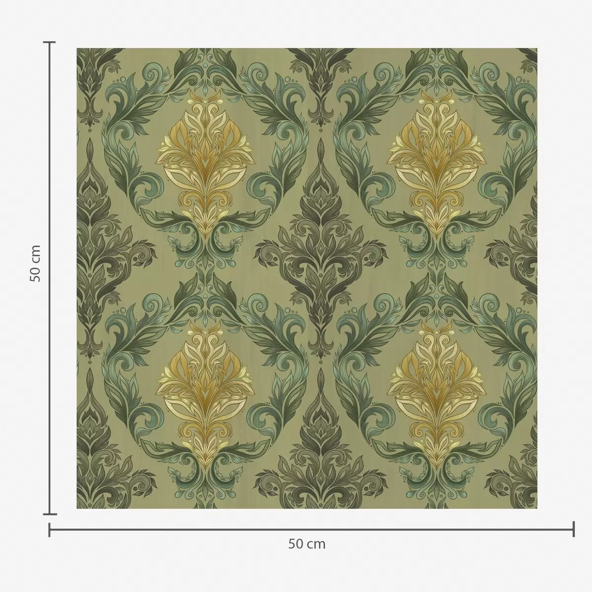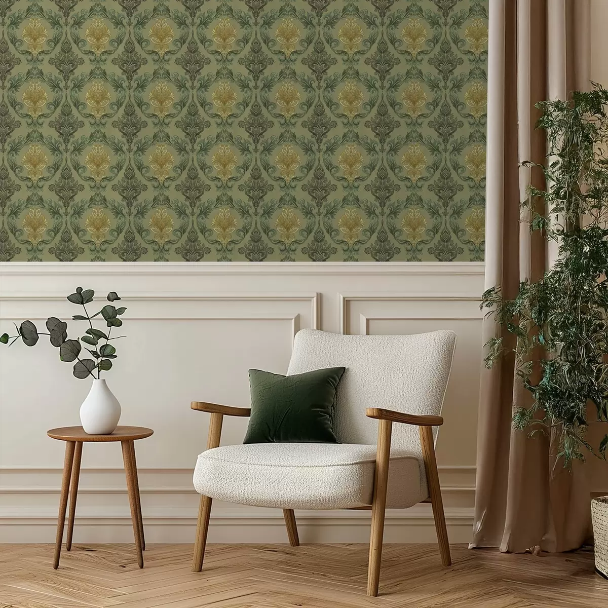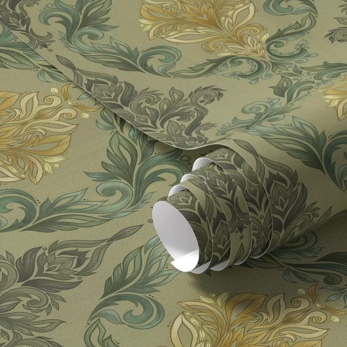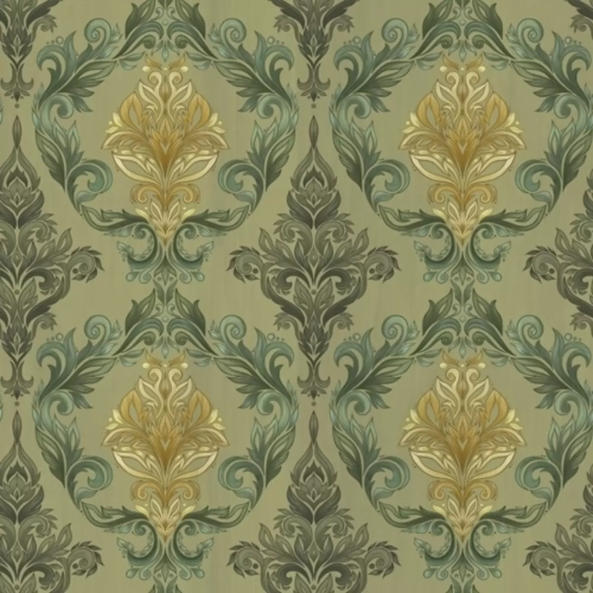 Papier peint Damassé à volutes végétales, palette ocre olive N° a00828