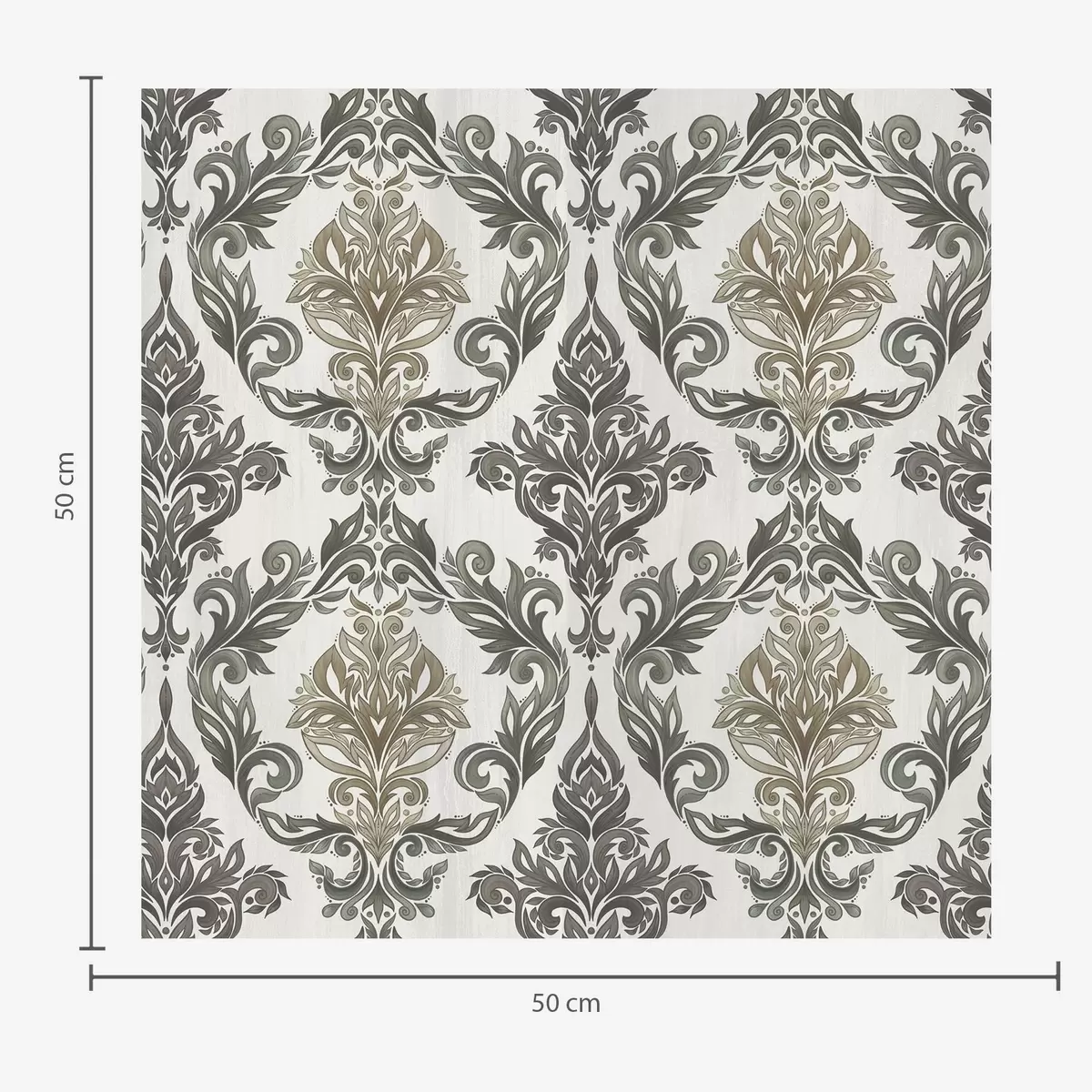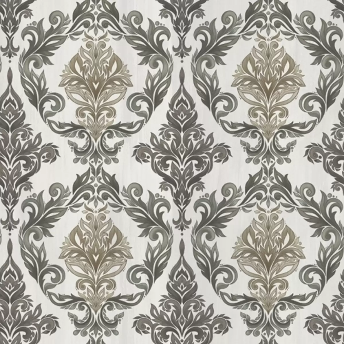 Papier peint Damassé sur fond clair, accents bronze olive N° a00828v6