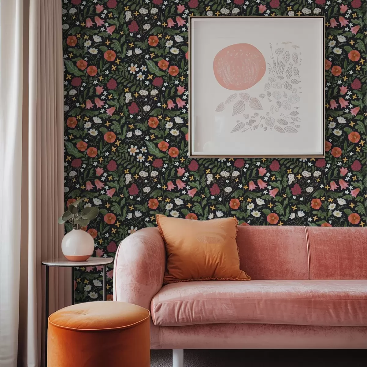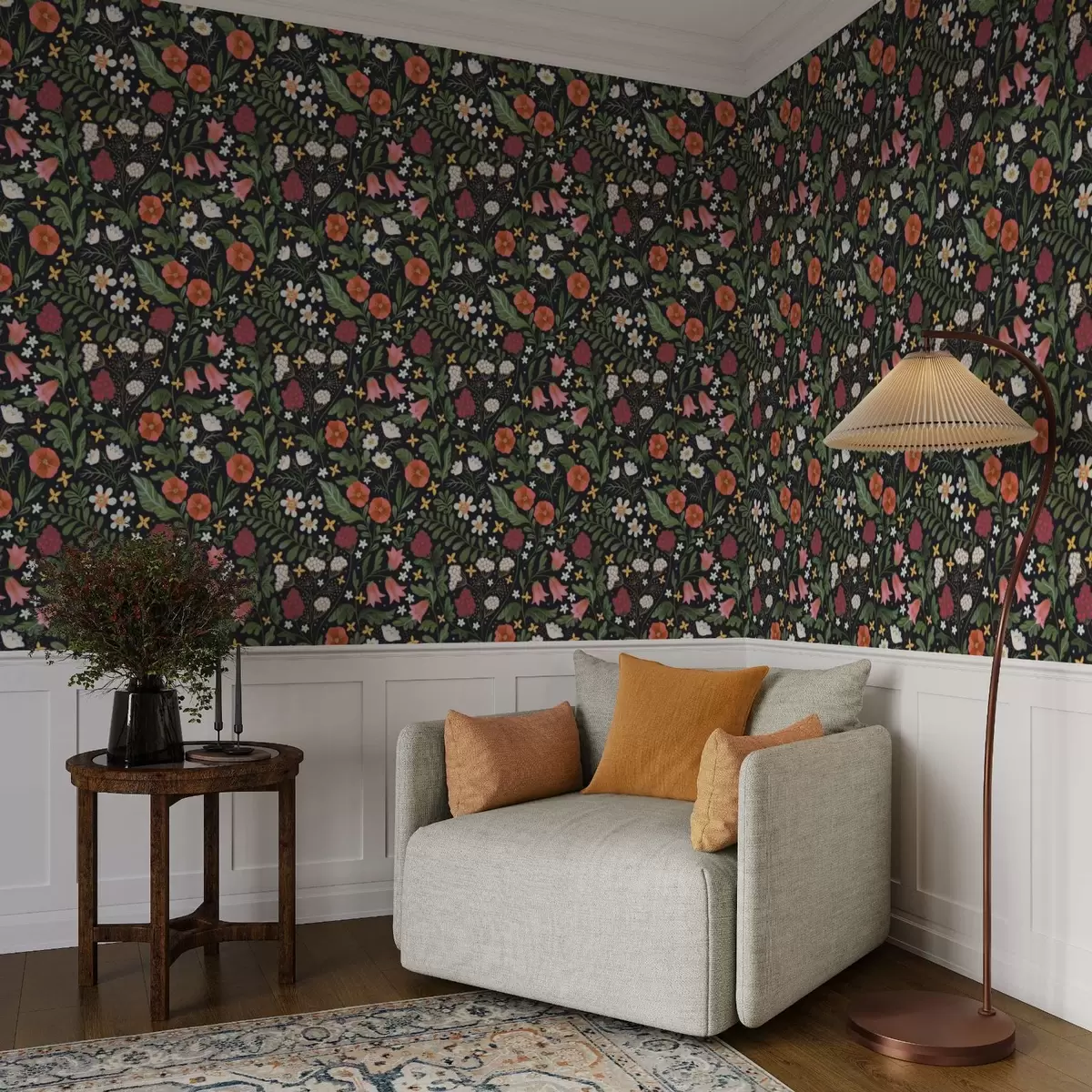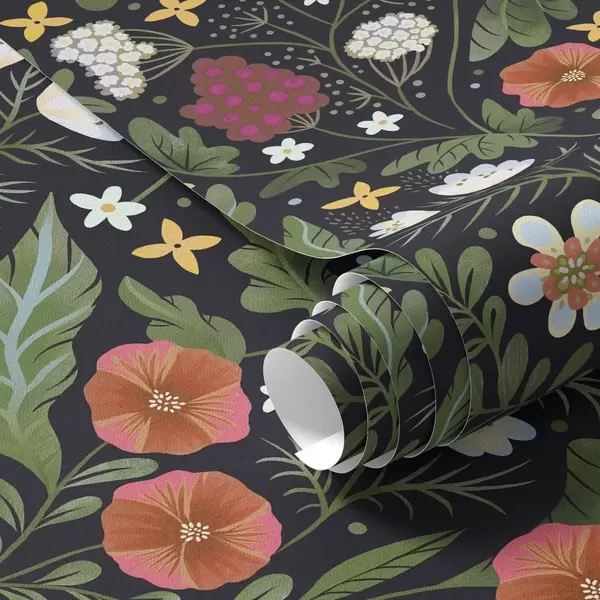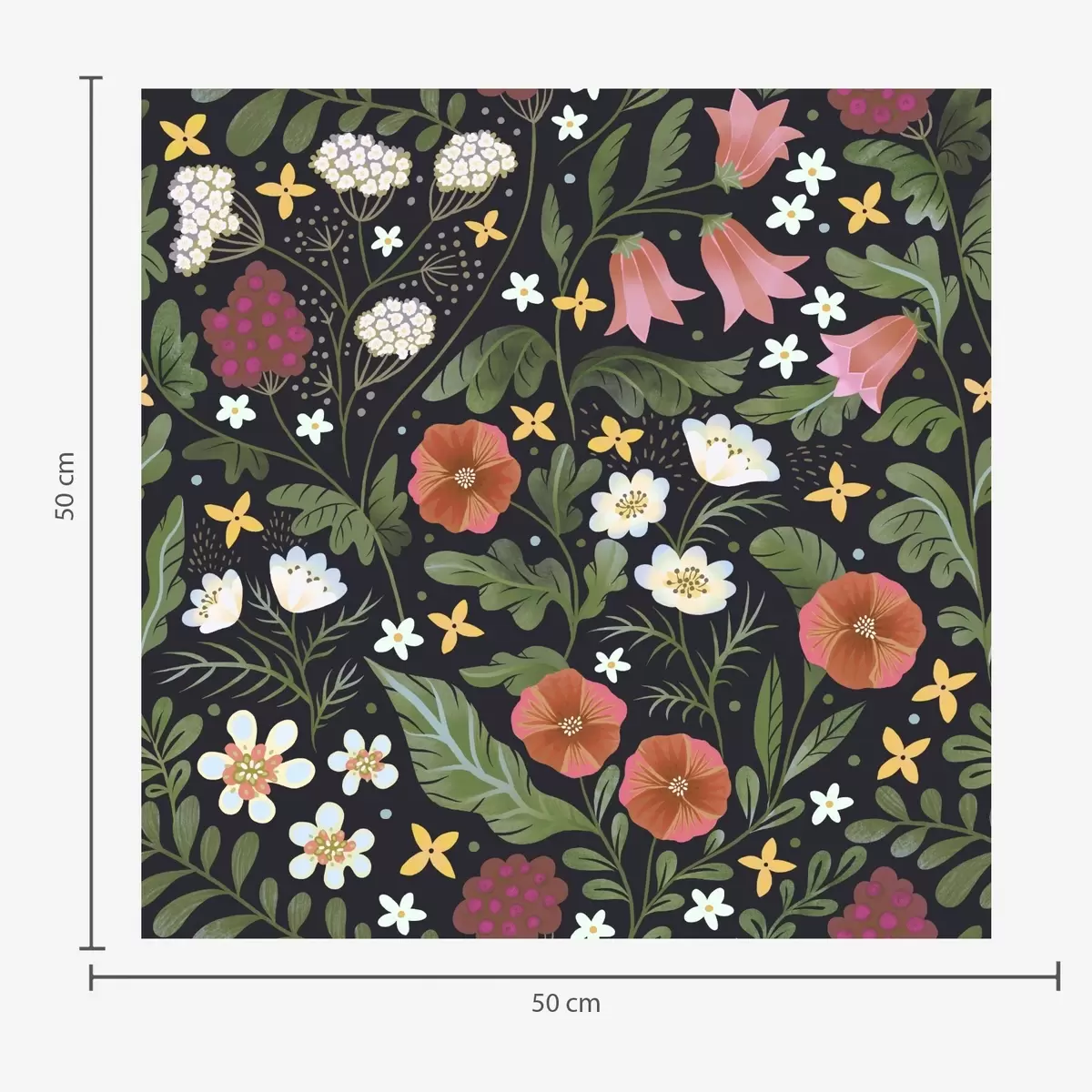 Papiers peints Fleurs sauvages et baies sur fond noir profond Nr. a00849v3