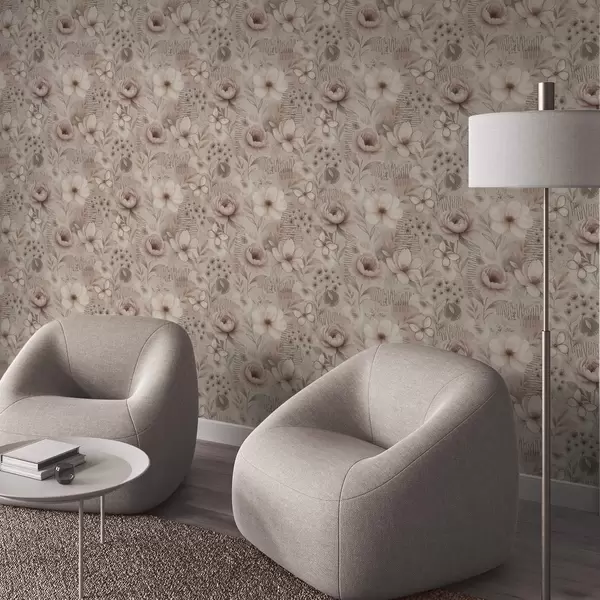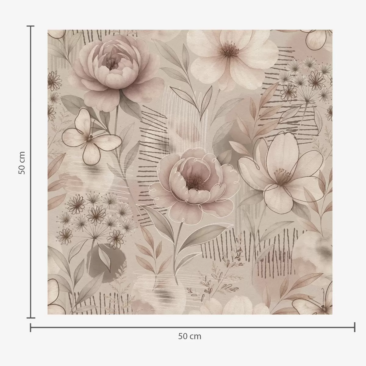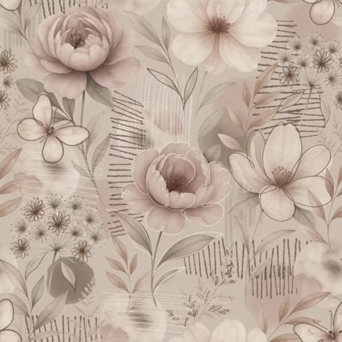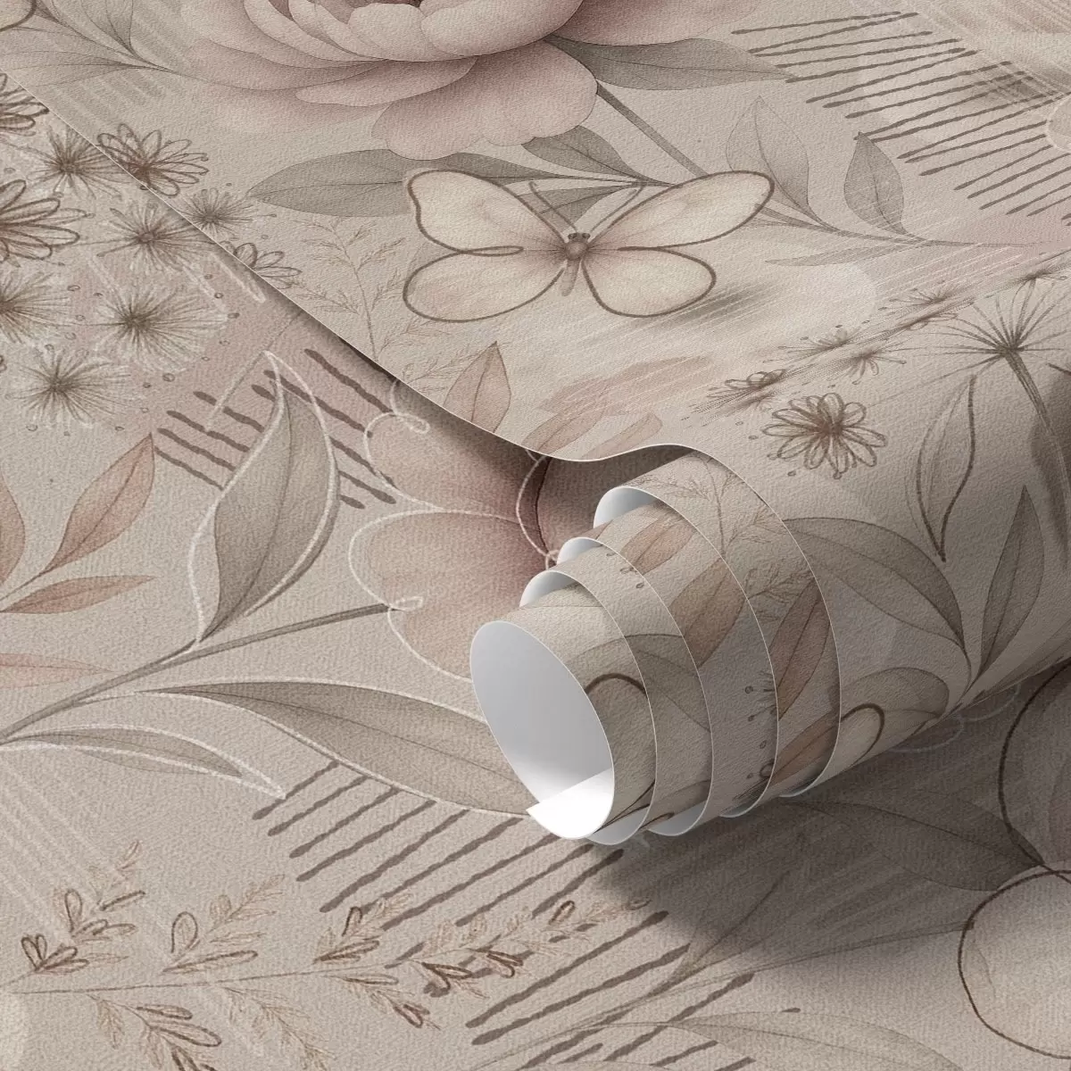 Papier peint Motifs floraux beige sépia avec accents papillon et linéaires N° a00870