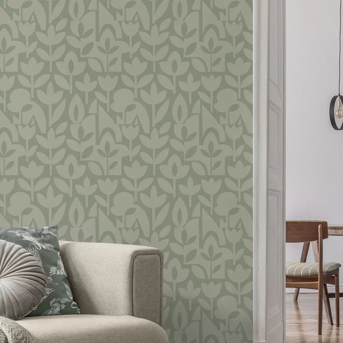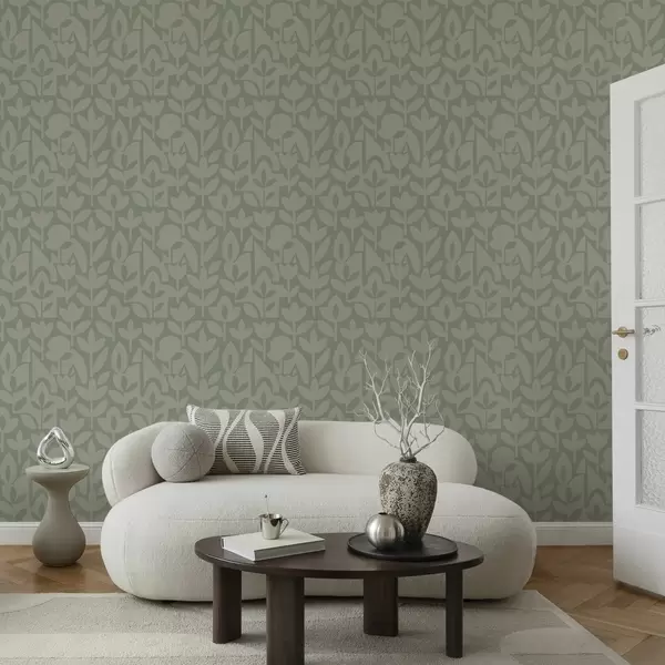 Papier peint Silhouettes florales géométriques dans des tons sauge doux N° a00875v1