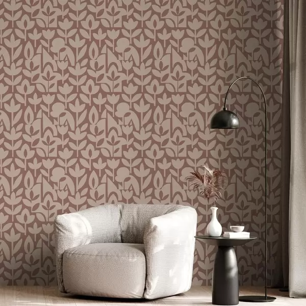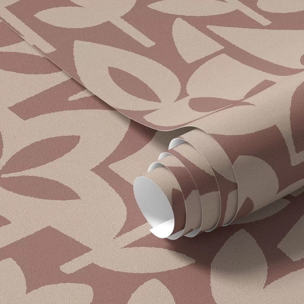 Papier peint Silhouettes florales géométriques en terre cuite et crème N° a00875v2