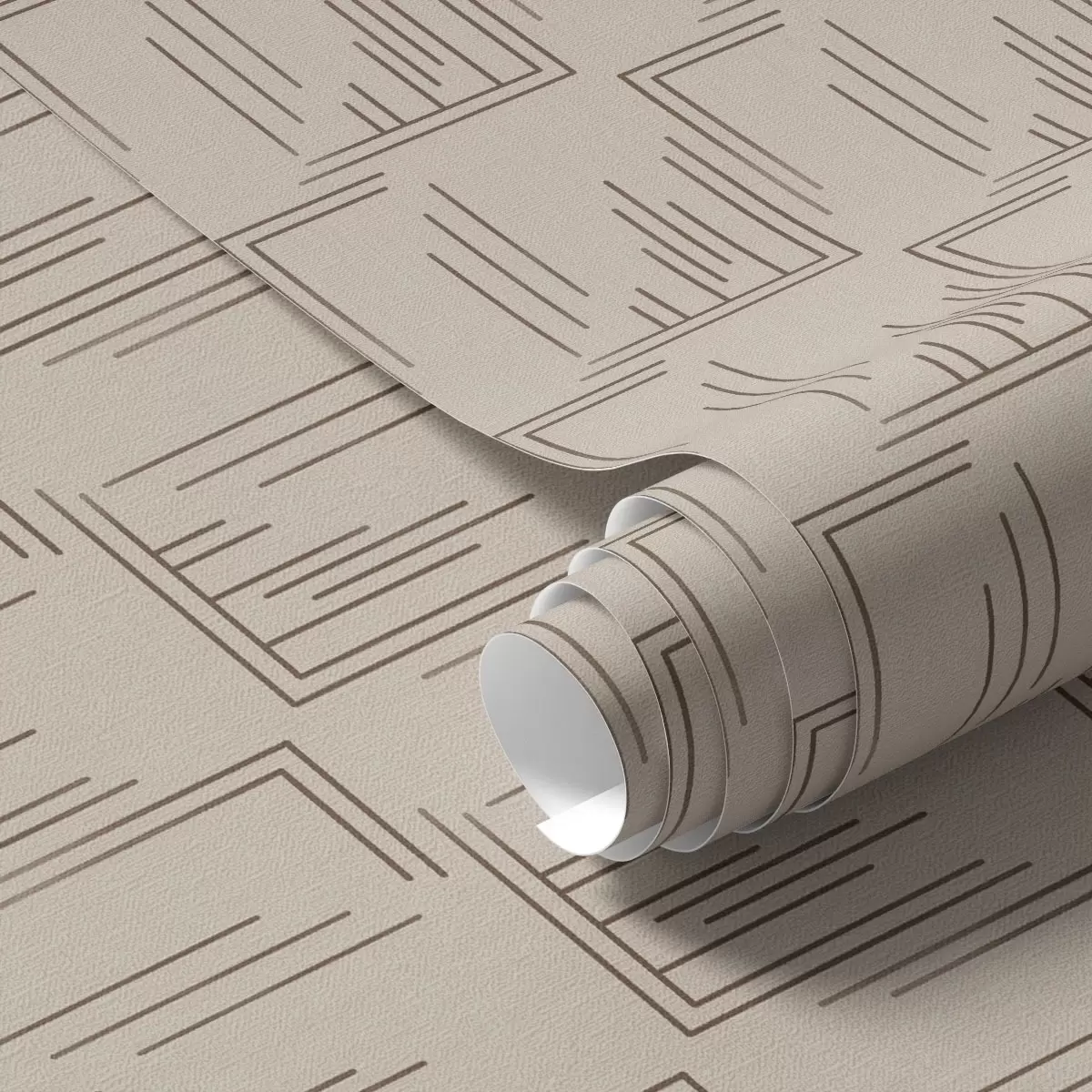 Papier peint Carrés d'angle en ligne de cacao sur fond beige chaud N° a00910