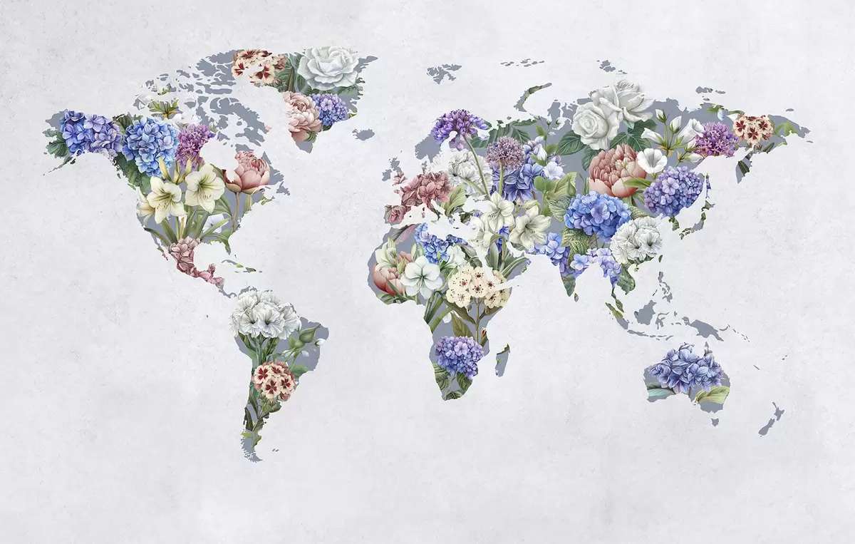 Papier peint Une carte du monde colorée, composée d'une variété de fleurs aux couleurs vives N° c00006