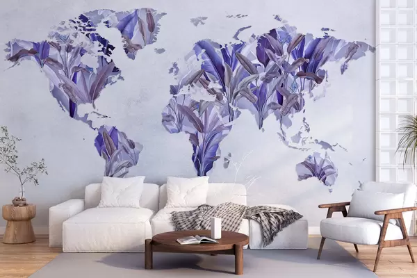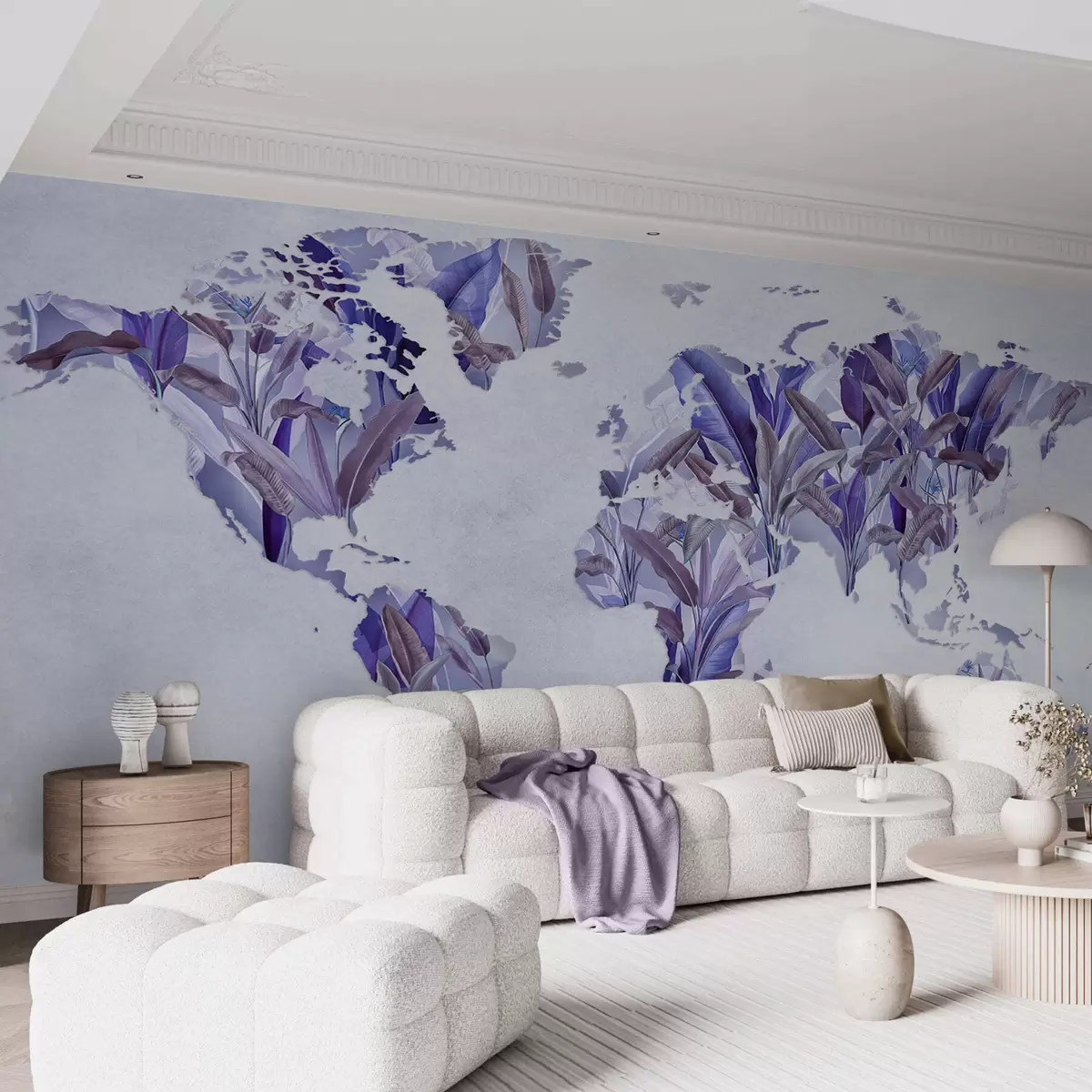 Papier peint Une carte du monde violette réalisée à partir de feuilles de bananier N° c00007v1