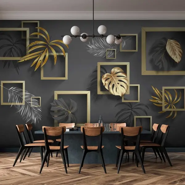 Papier peint Cadres élégants avec motifs de feuilles luxuriantes N° u20111