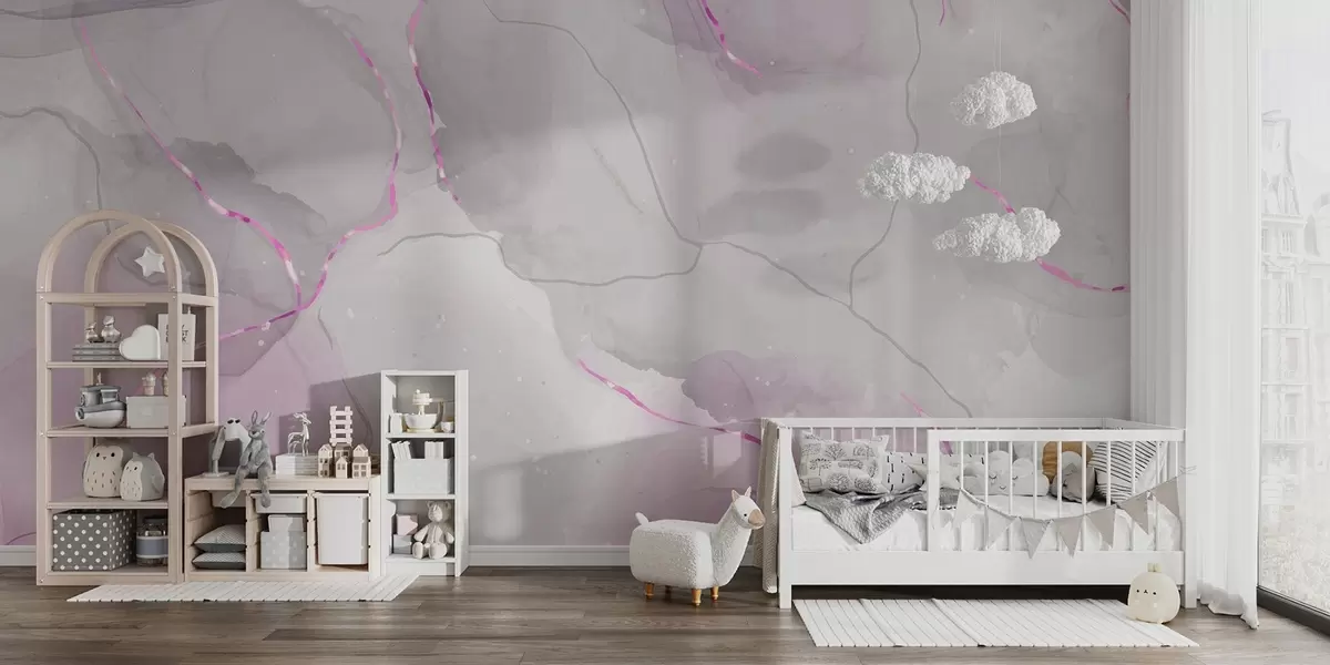 Papier peint Doux tourbillons de teintes roses et grises N° u80088v2
