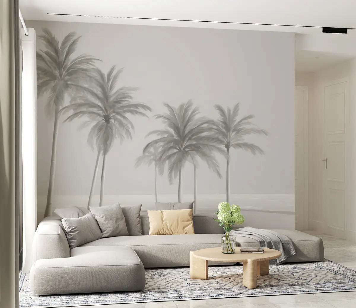 Papier peint Palmiers noirs et blancs au bord de la mer N° u98763