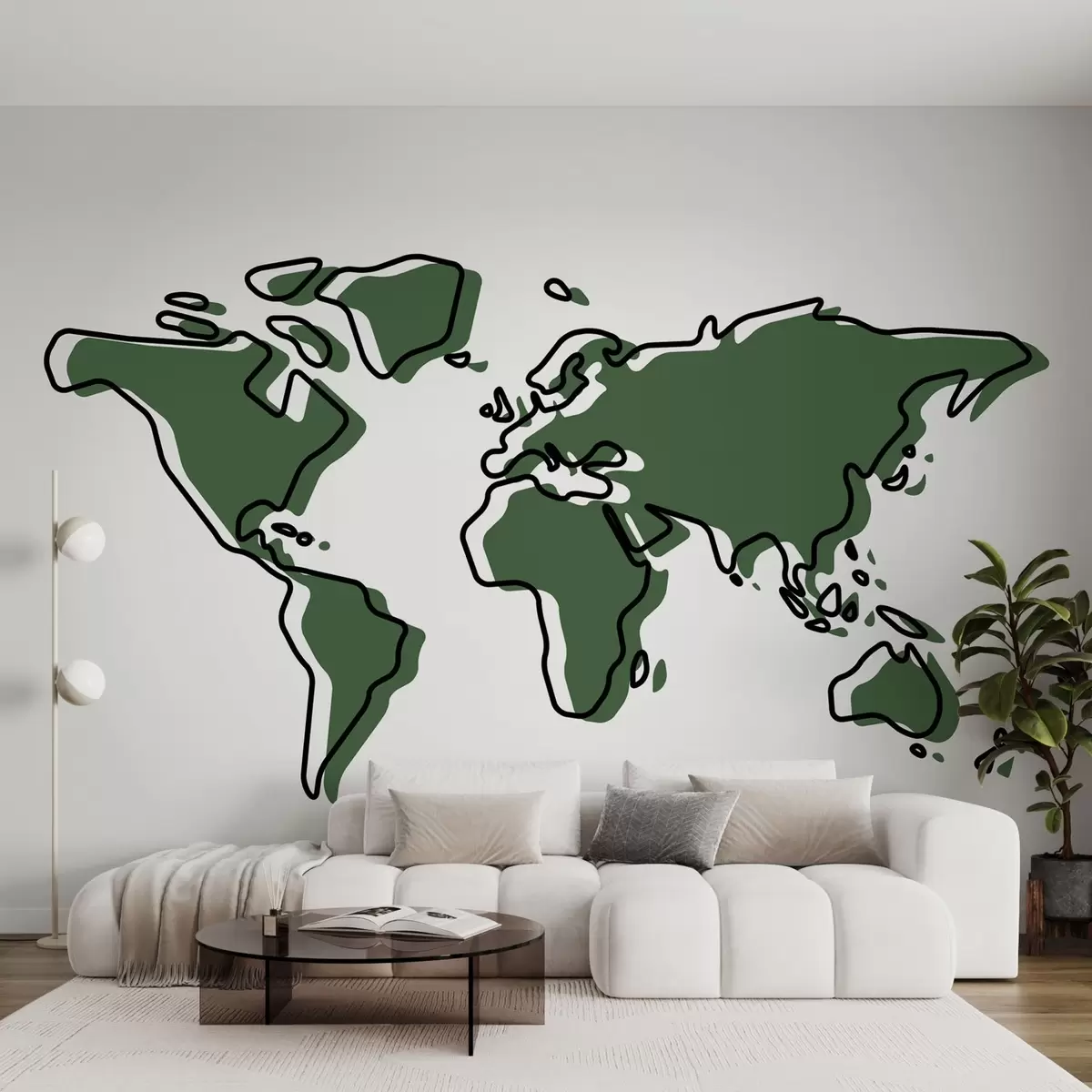 Papier peint Illustration simplifiée de la carte du monde en vert N° u99073v2