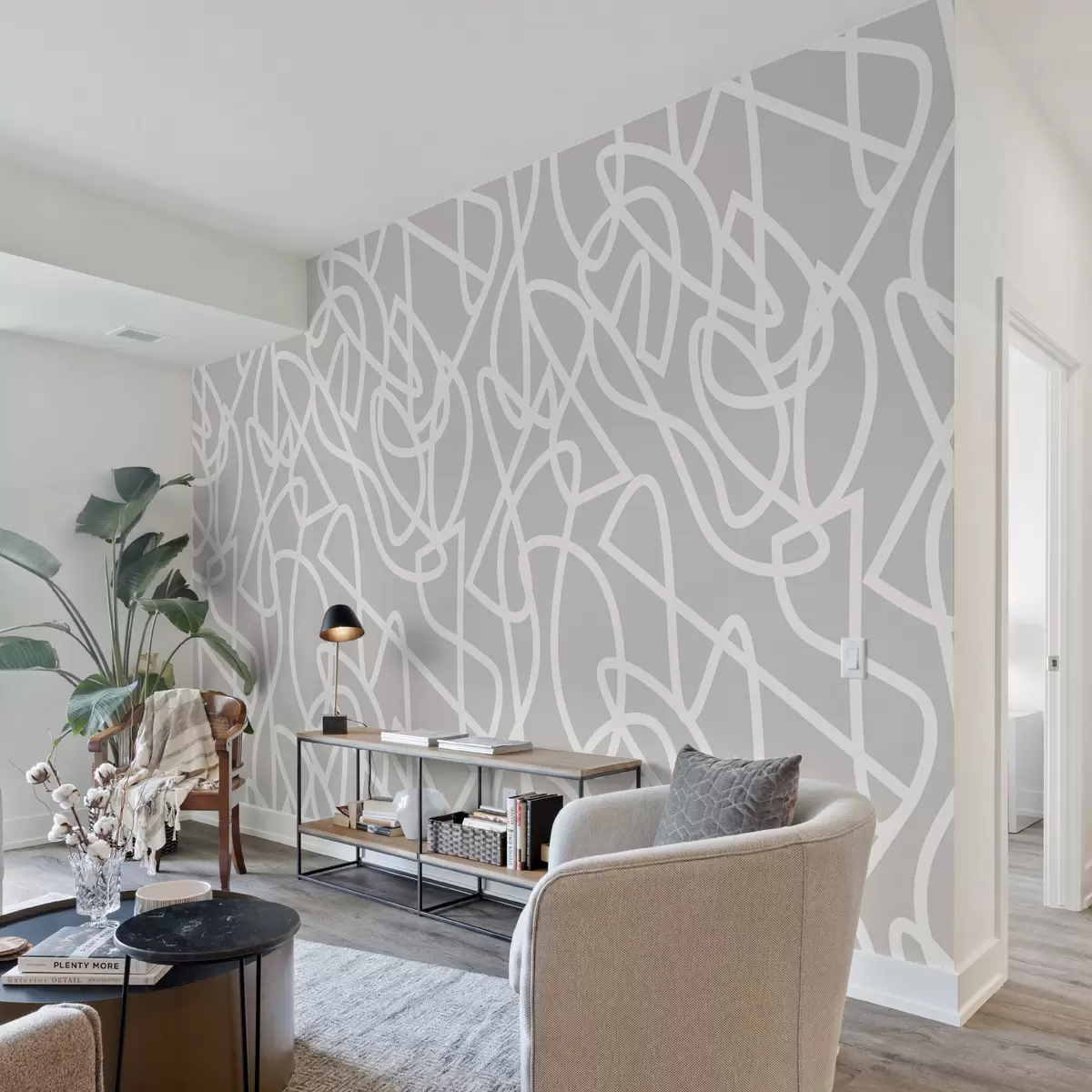 Papier peint Lignes tendance dans un style boho minimaliste en gris N° u99097v4