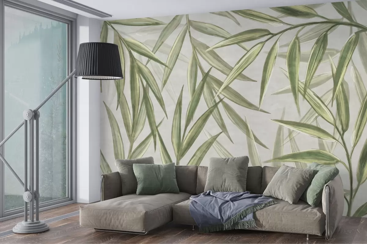 Papier peint Feuilles luxuriantes dans de doux tons d'aquarelle N° w00236