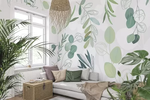 Papier peint Une verdure délicate dans des tons apaisants w00409