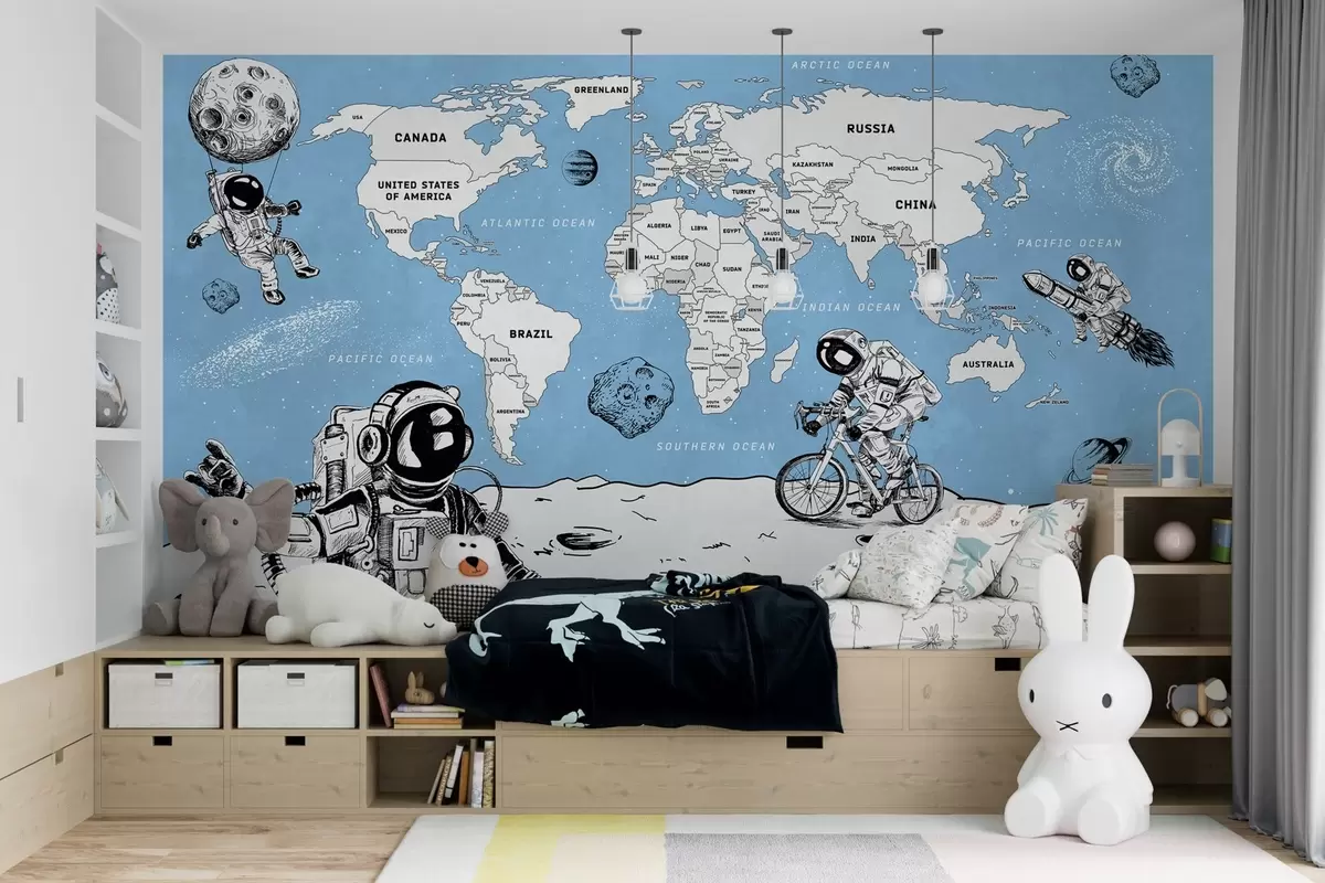 Papier peint Les astronautes explorent un univers fantaisiste N° w00473