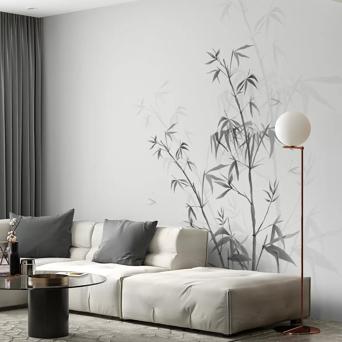 Papier peint Style minimalisme plante Japandi bambou Chinoiserie couleur gris N° w00546v1
