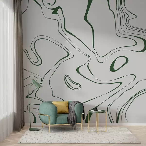 Papier peint Lignes fluides en vert et blanc N° w00634v3