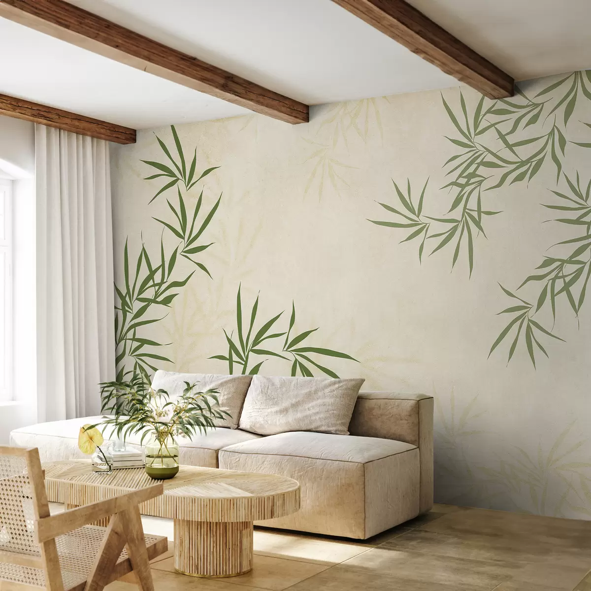 Papier peint Brindilles de plantes, bambou, style vintage, fond de texture, jaune, couleur verte N° w00817