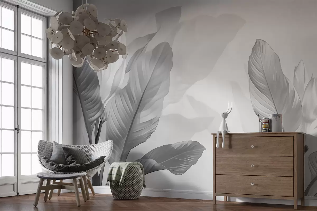 Papier peint Feuilles noires et blanches N° w01068