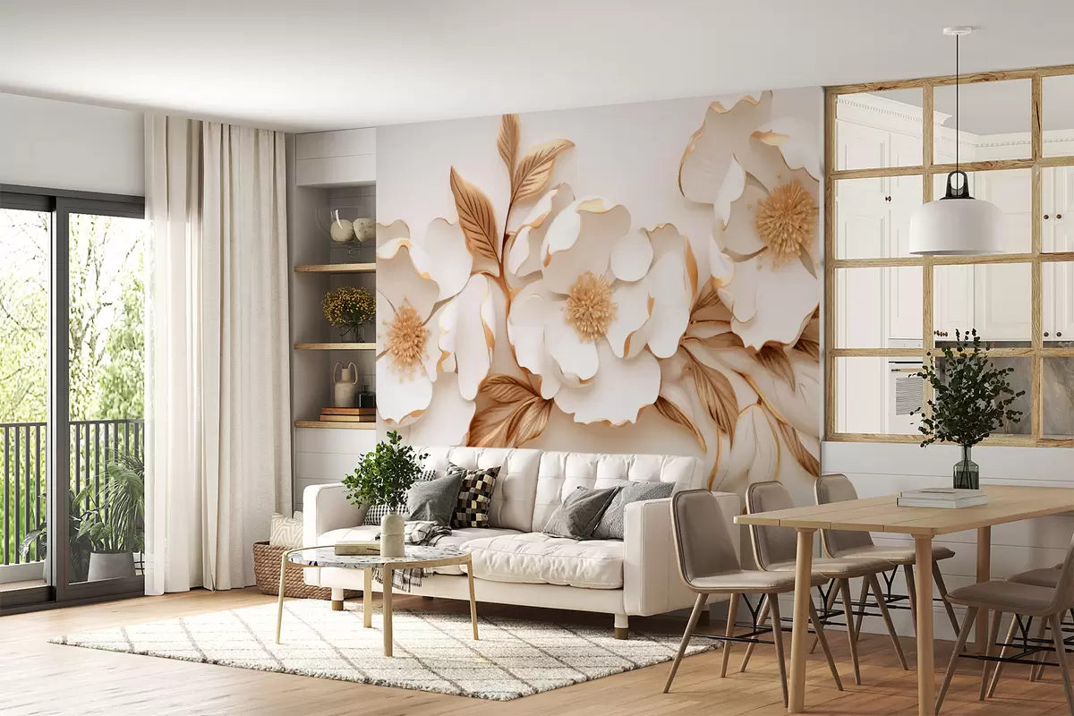 Papier peint Fleurs avec feuilles brunes N° w01113