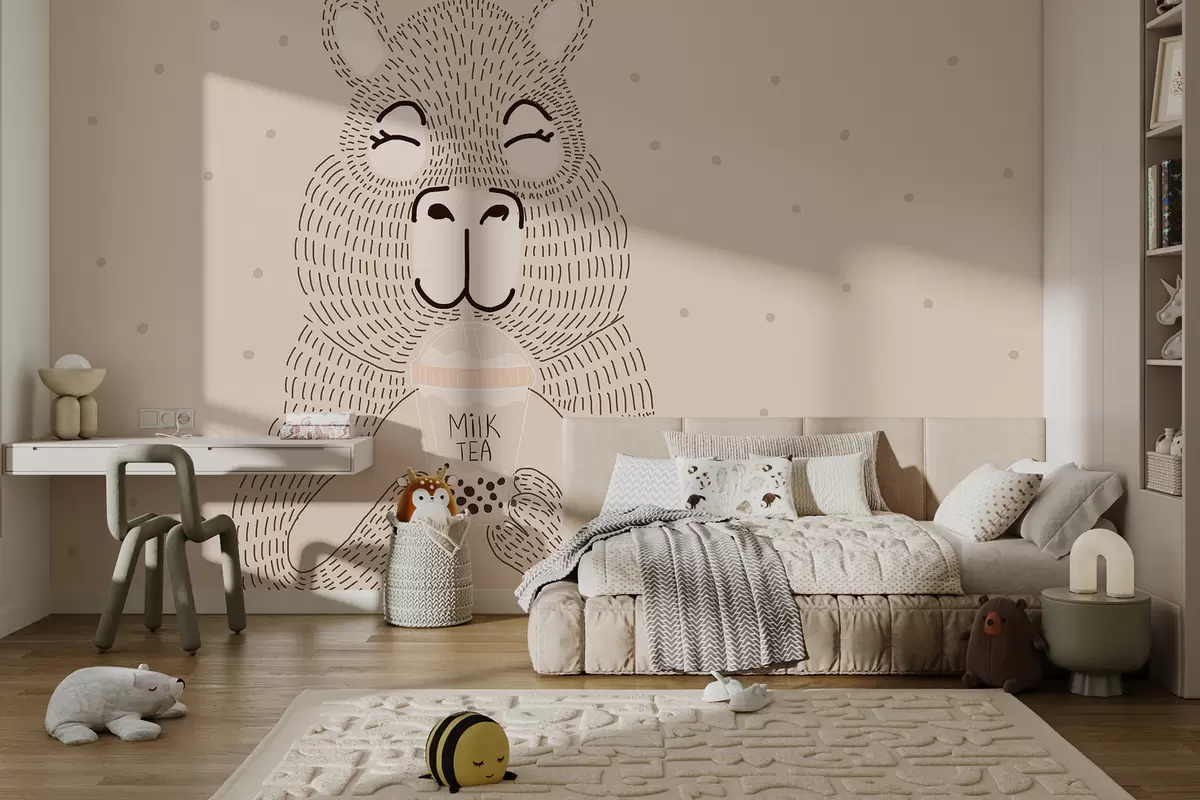 Papier peint Grand capybara mignon avec un tee-shirt à bulles dans un style minimaliste sur un fond beige pointillé N° w01122v1