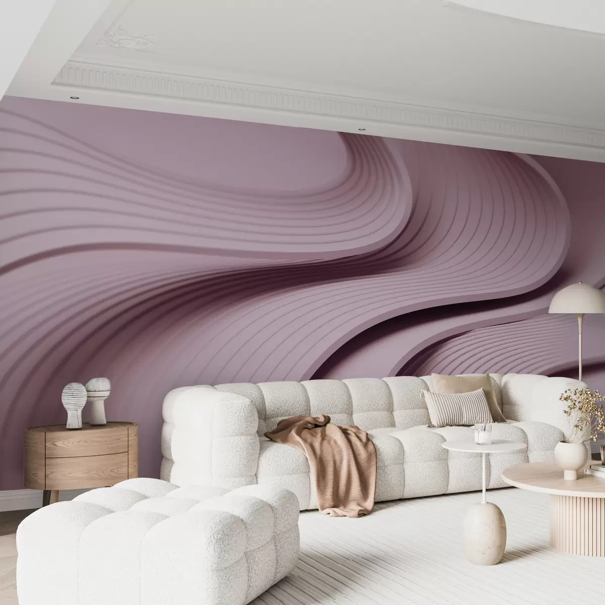 Papier peint Élégantes ondulations volumineuses en 3D dans des teintes poudrées N° w01147v1