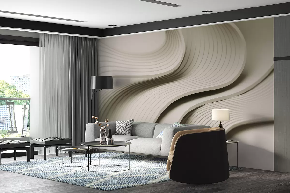 Papier peint Élégantes ondulations volumineuses en 3D dans les tons beiges N° w01147v2
