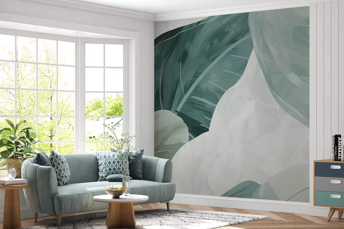 Papier peint Un gros plan de feuilles vertes dans un style dessiné. N° w01276