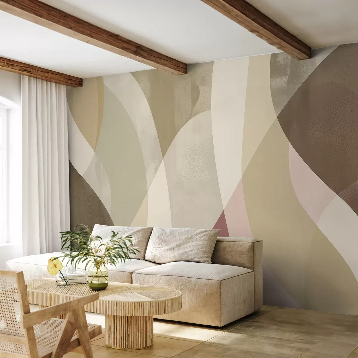 Papier peint Courbes douces aux tons neutres avec des lignes fluides et des dégradés beiges, minimalistes et modernes N° w01334v1