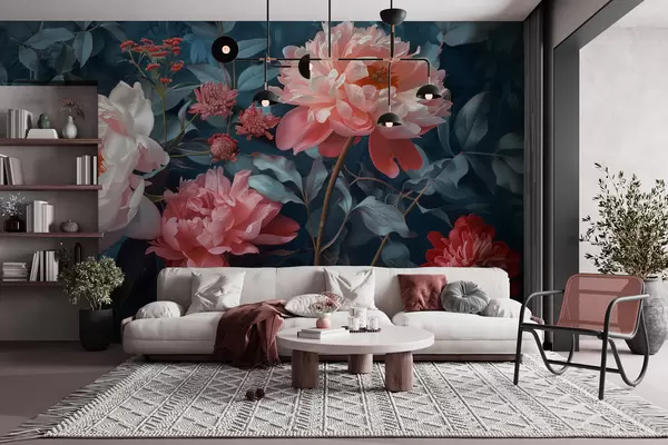 Papier peint Fleurs de pivoine de minuit N° w01392