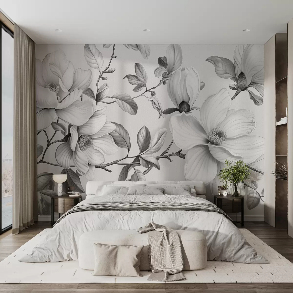 Papier peint L'élégance du magnolia monochrome N° w01429