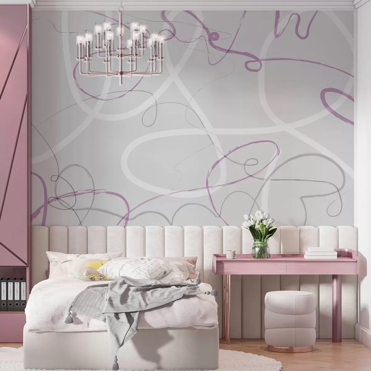 Papier peint Lignes violettes abstraites sur fond gris N° w01455v2
