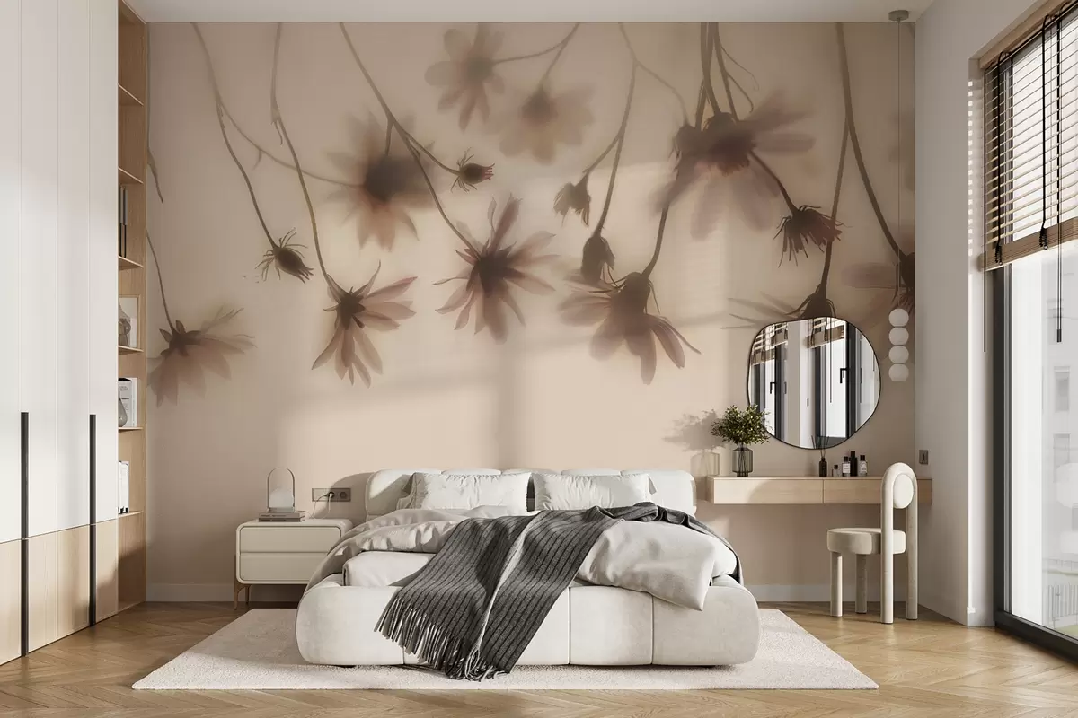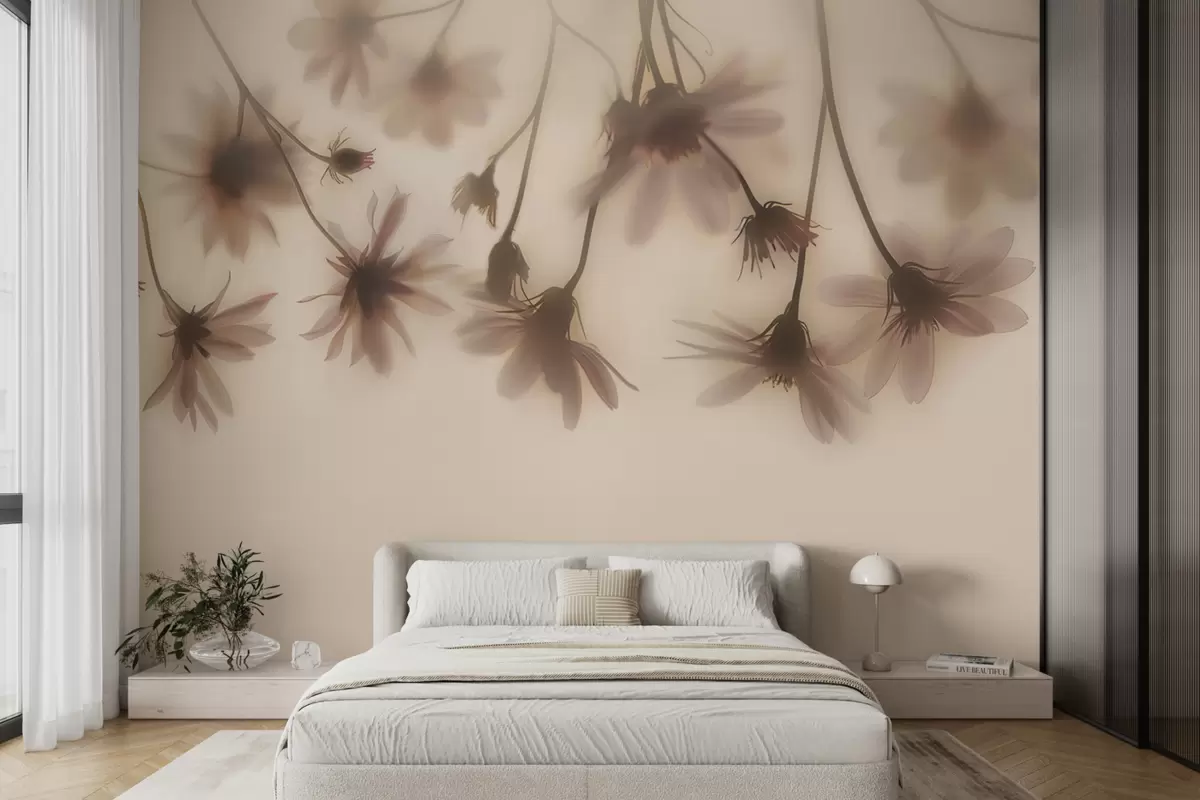 Papier peint Fleurs délicates dans le brouillard suspendues au-dessus dans des couleurs roses N° w01469