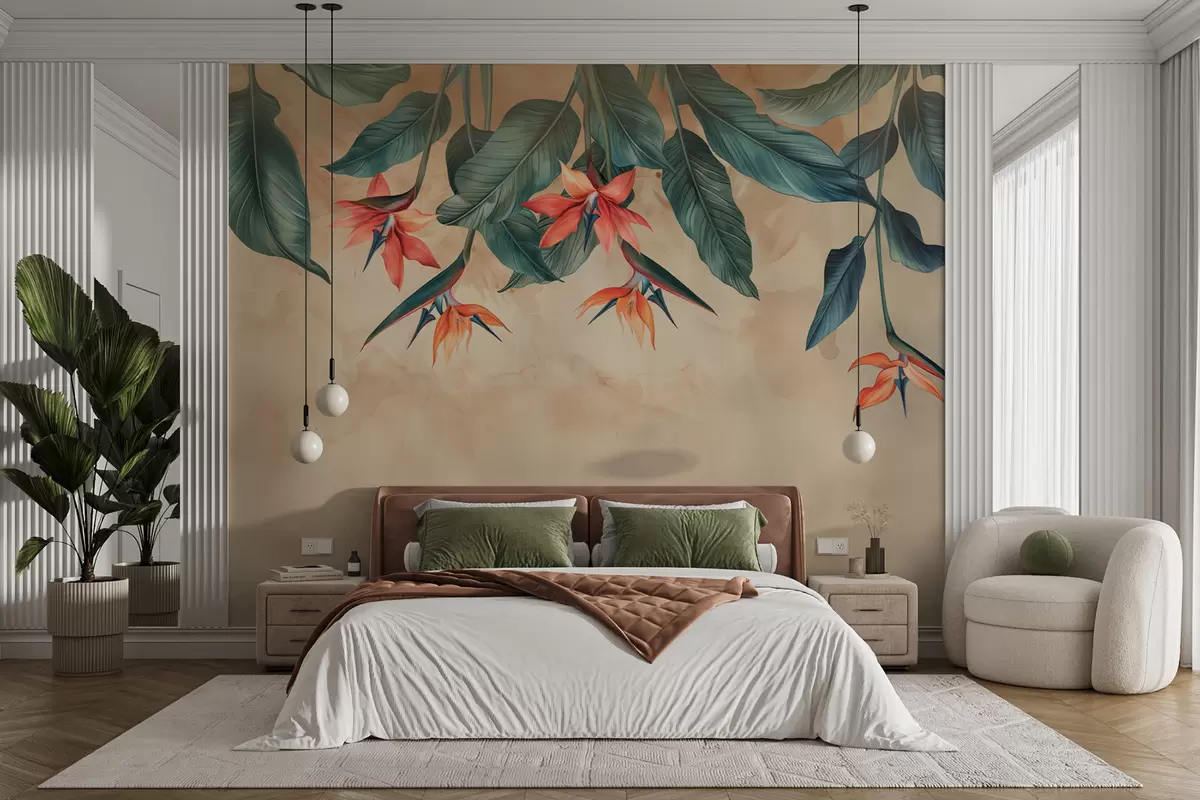 Papier peint Fleur tropicale sur fond aquarelle beige N° w01485