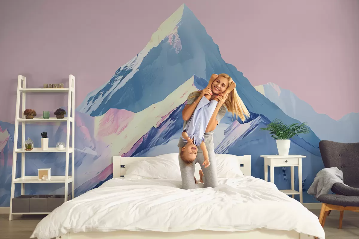 Papier peint Montagnes bleues et roses dessinées N° w01497