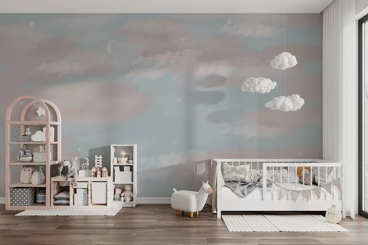 Papier peint Ciel magique avec nuages, lune et étoiles N° w01549