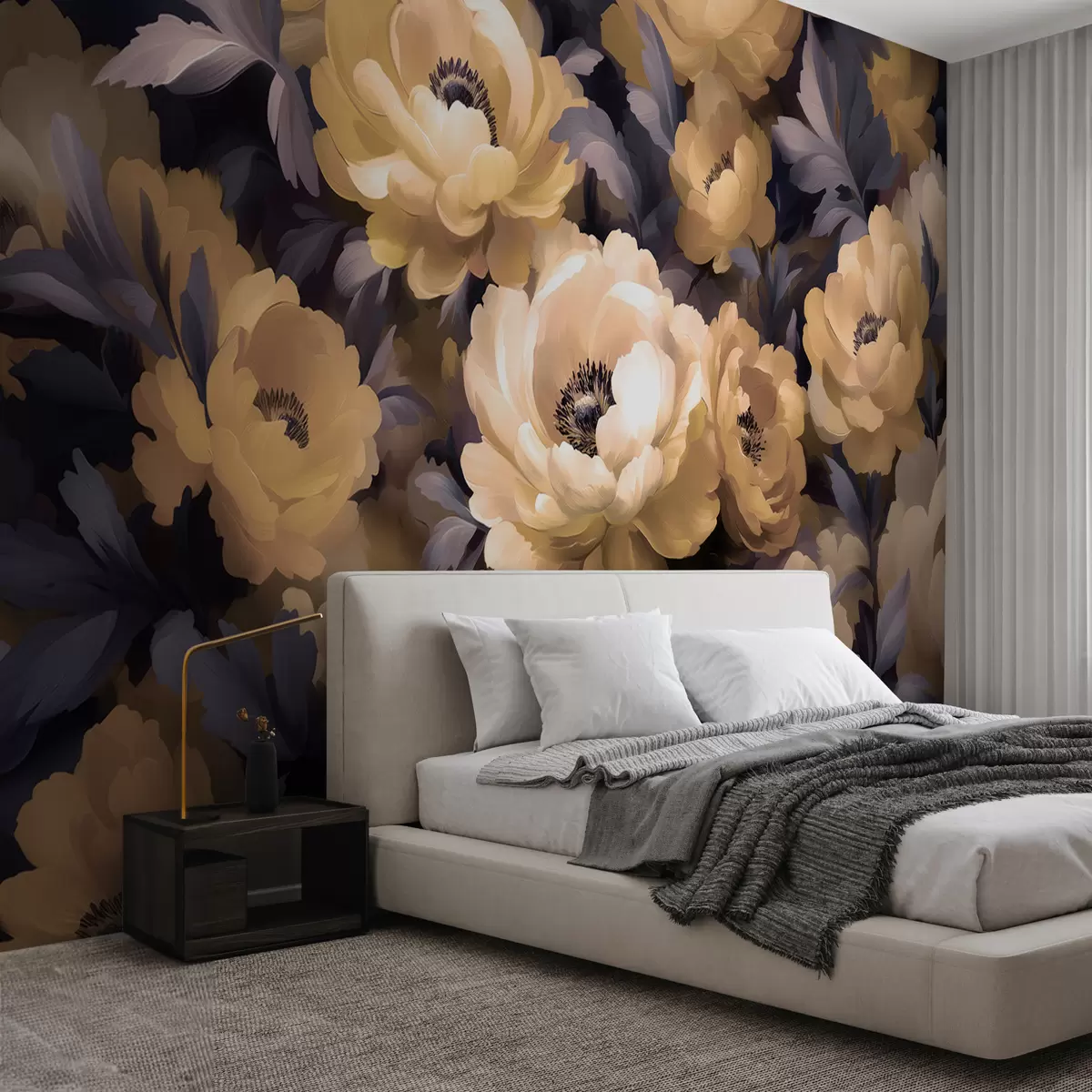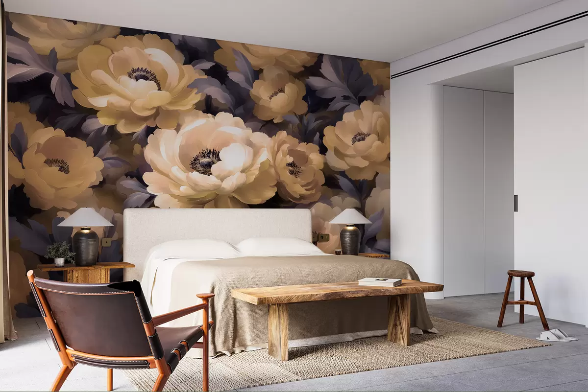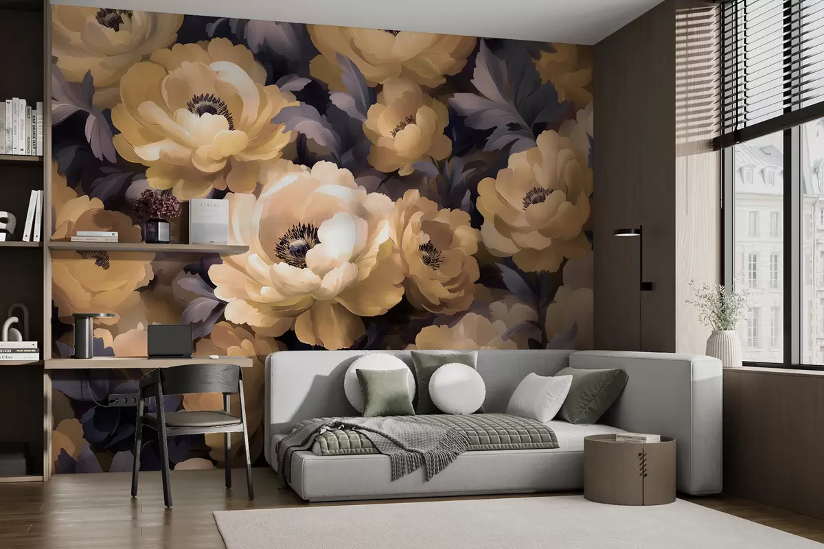 Papier peint Peinture à l'huile de style floral basée sur les couleurs beige et violet N° w01581