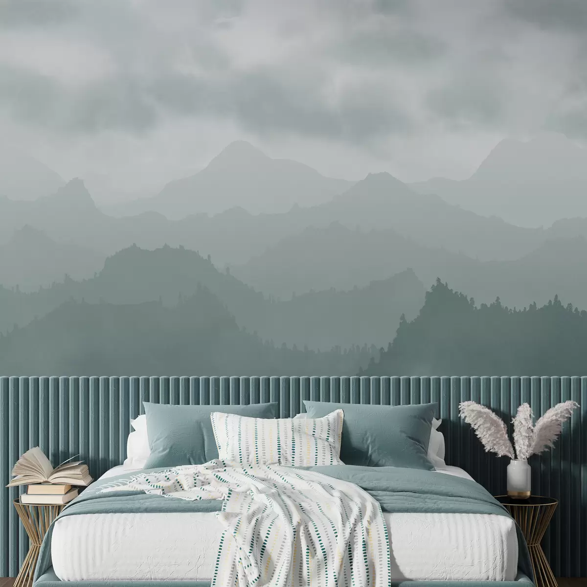Papier peint Montagnes brumeuses avec des cirrus bleus dans le ciel N° w01637v2