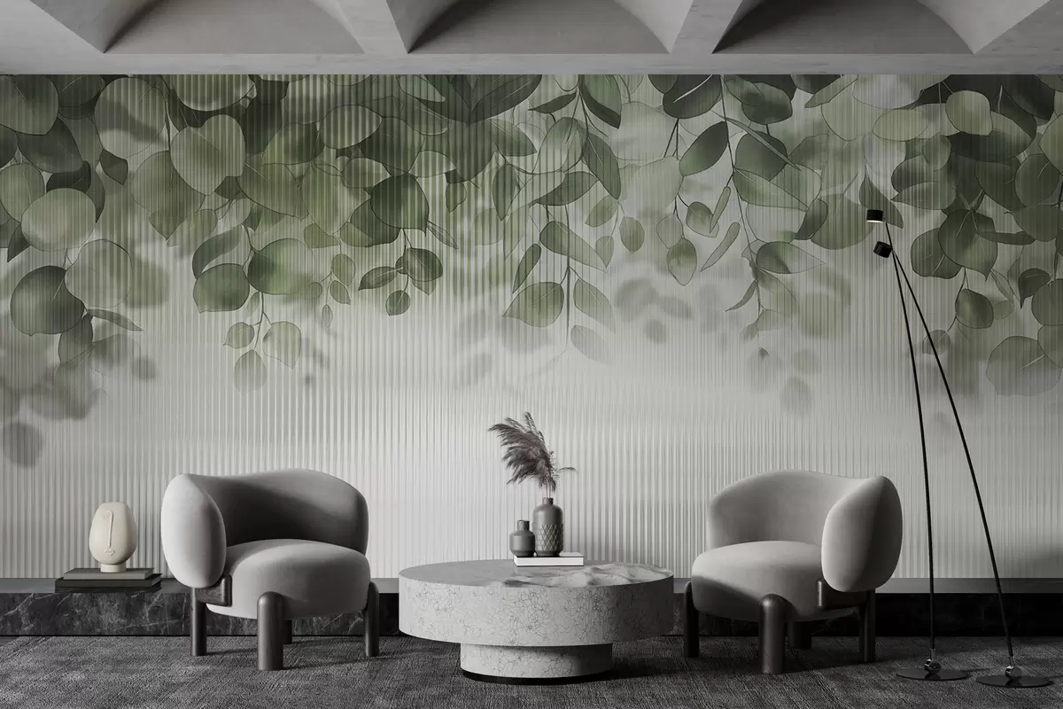 Papier peint feuilles d'eucalyptus derrière le verre N° w01677