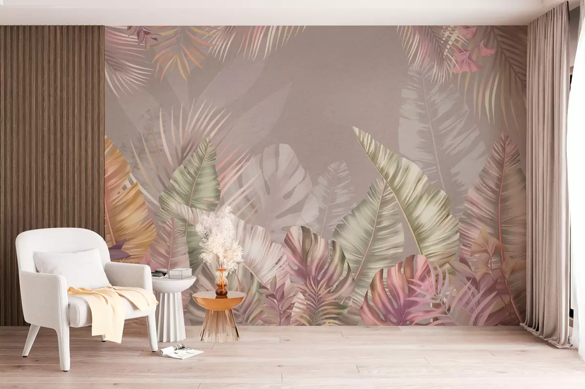 Papier peint Feuilles tropicales aux teintes pastel douces N° w01684