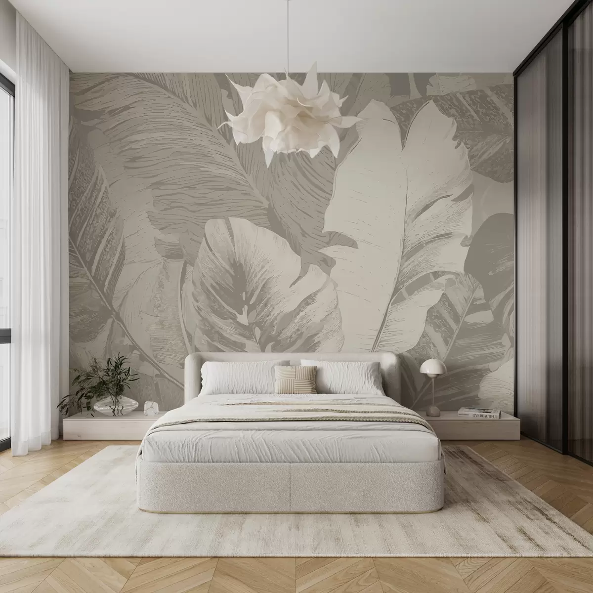 Papier peint Grandes feuilles de palmier aux couleurs pastel N° w01761