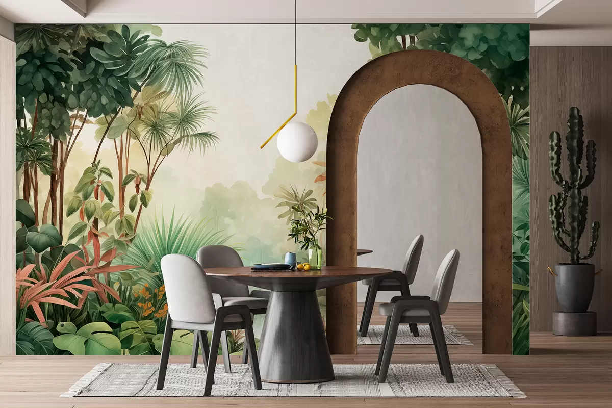 Papier peint Forêt de jungle aquarelle, palmiers, lac, verdure N° w01784