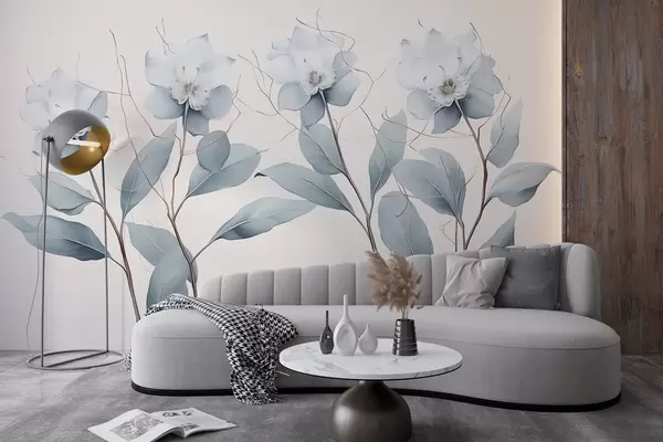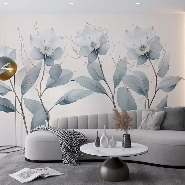 Papier peint Fleurs en acrylique, minimalisme, palette de couleurs grises N° w01883