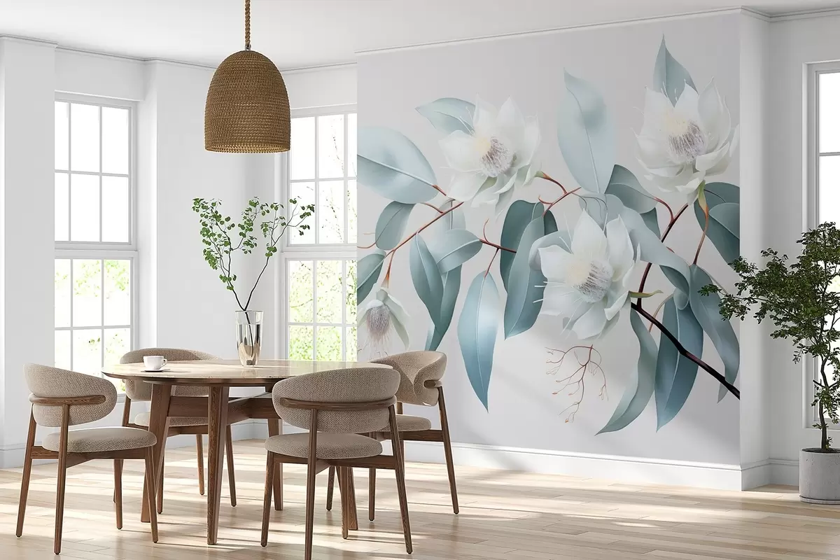 Papier peint Fleurs de jasmin sur la branche, acrylique, couleurs grises douces N° w01885