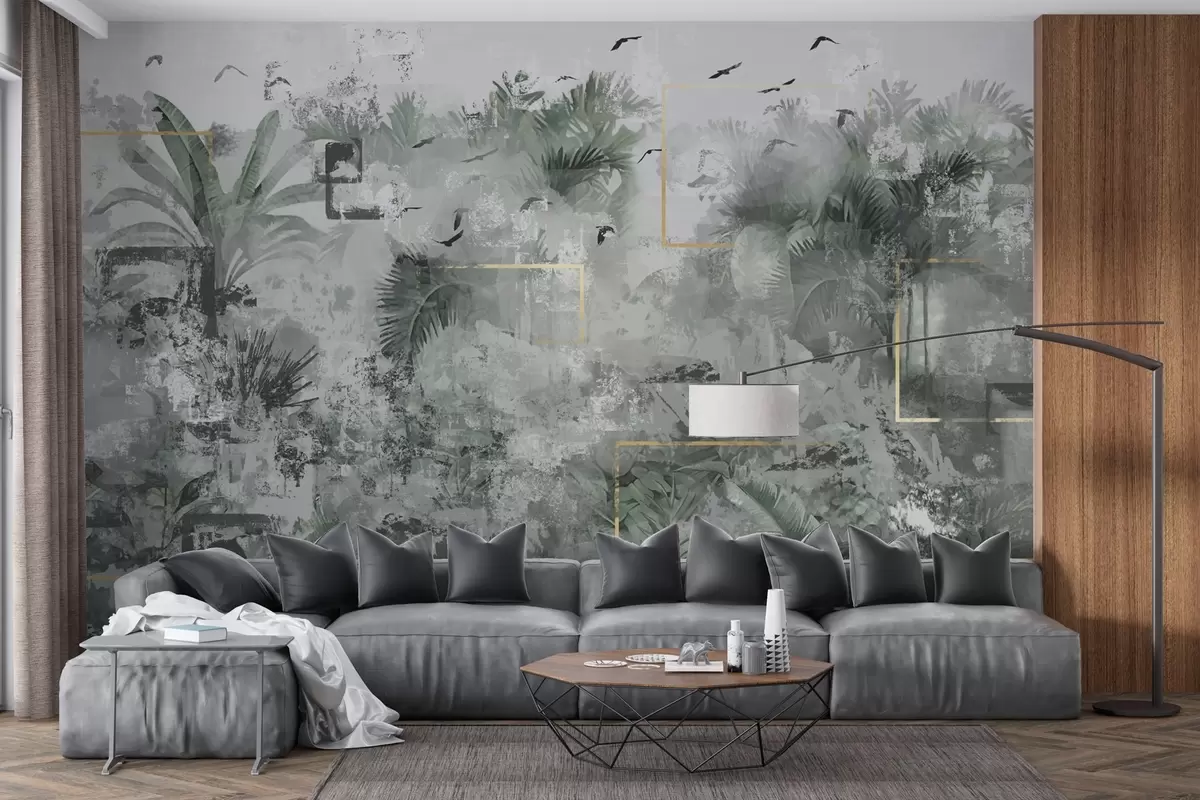 Papier peint Silhouette de forêt tropicale de style grunge N° w01917