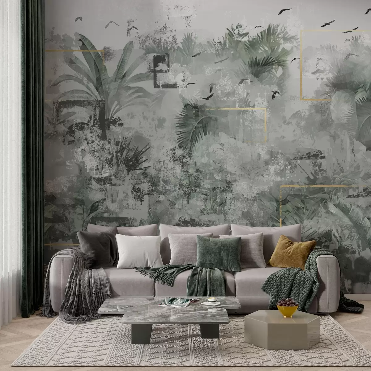 Papier peint Silhouette de forêt tropicale de style grunge N° w01917