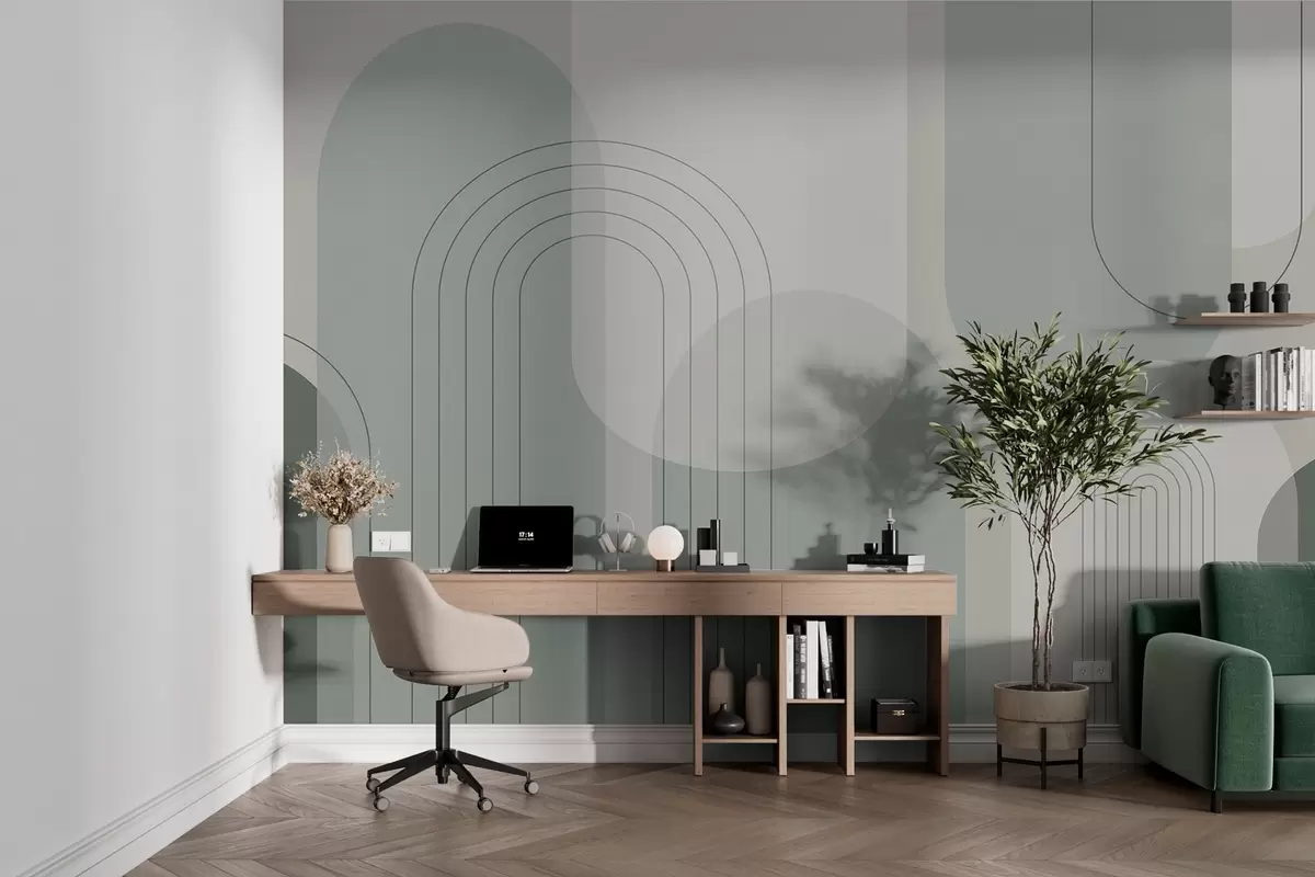 Papier peint Géométrie minimaliste et bohème dans les tons verts N° w01920