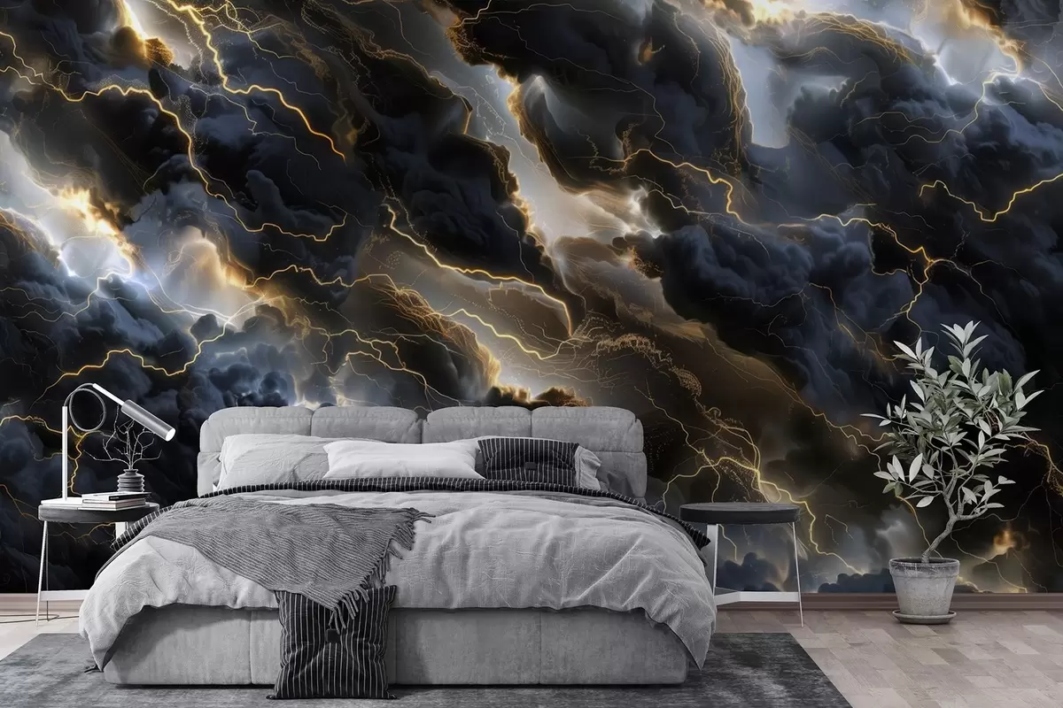 Papier peint Nuages noirs avec des éclairs qui ressemblent à du marbre w01936