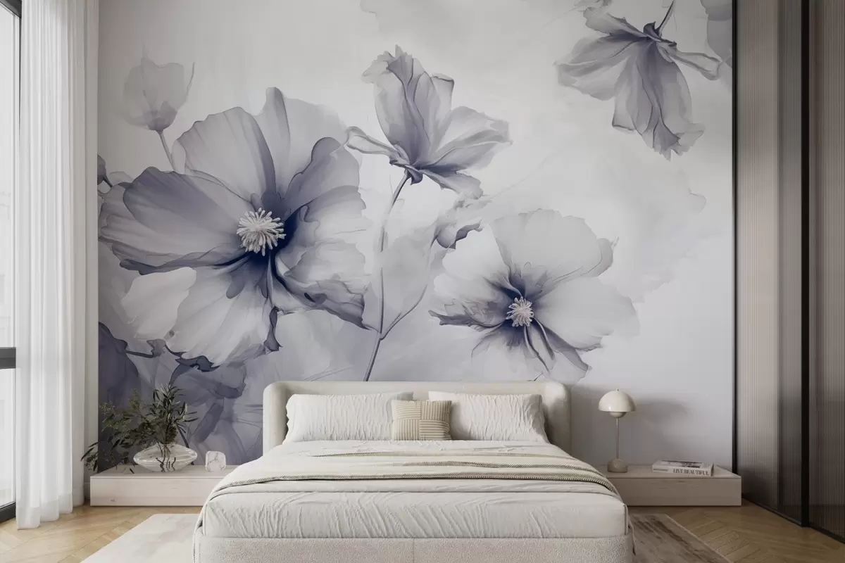 Papier peint Fleurs aériennes d'un bleu translucide se dissolvant dans la lumière du matin N° w01938v2
