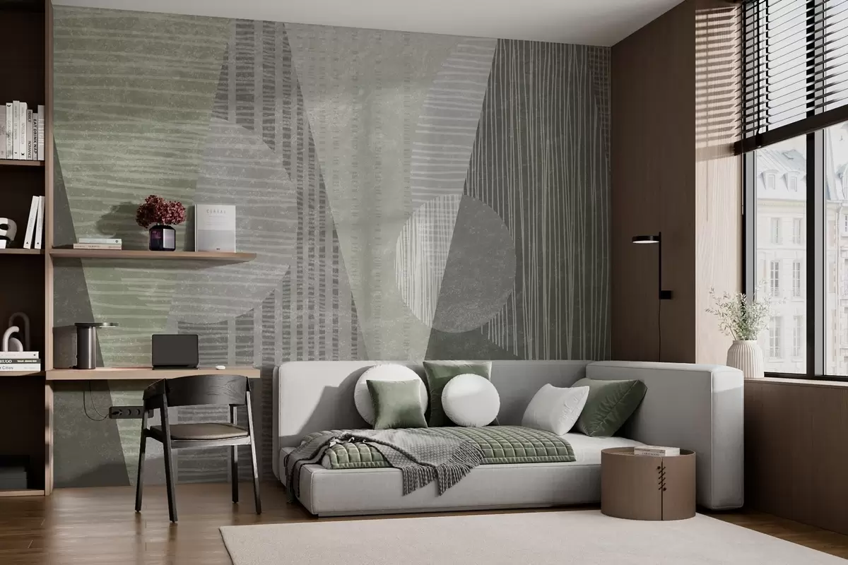 Papier peint Géométrie moderne de style vintage dans des couleurs vertes N° w02003v2