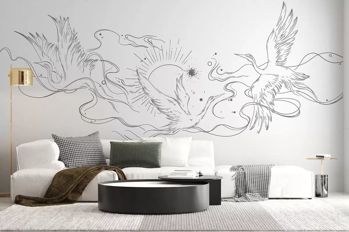 Papier peint Oiseaux volants, dessin au trait, minimalisme, palette de couleurs grises N° w02022v2